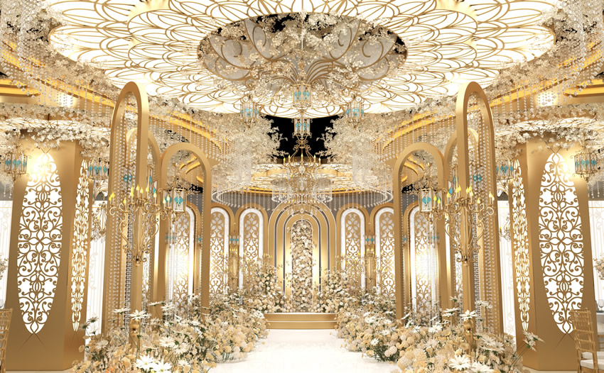 空间布局:考虑婚礼堂的用途,设定空间布局。婚礼堂通常包括仪式区,接待区,餐饮区等。要确保所有区域都足够宽敞,且能够顺利地进行各项活动。
